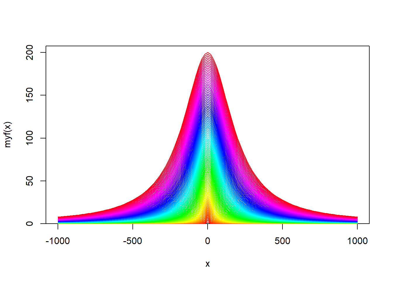 versiera_agnesi =function(x,r){ r2 = r*r r3 = r2*r d = (8*r3)/(x^2+4*r2) d = d / (4*pi*r2)return(d)}versiera_cauchy =function(x,r){ d=dcauchy(x, location =0, scale =2*r)return(d)}versiera_agnesi(3, 2)