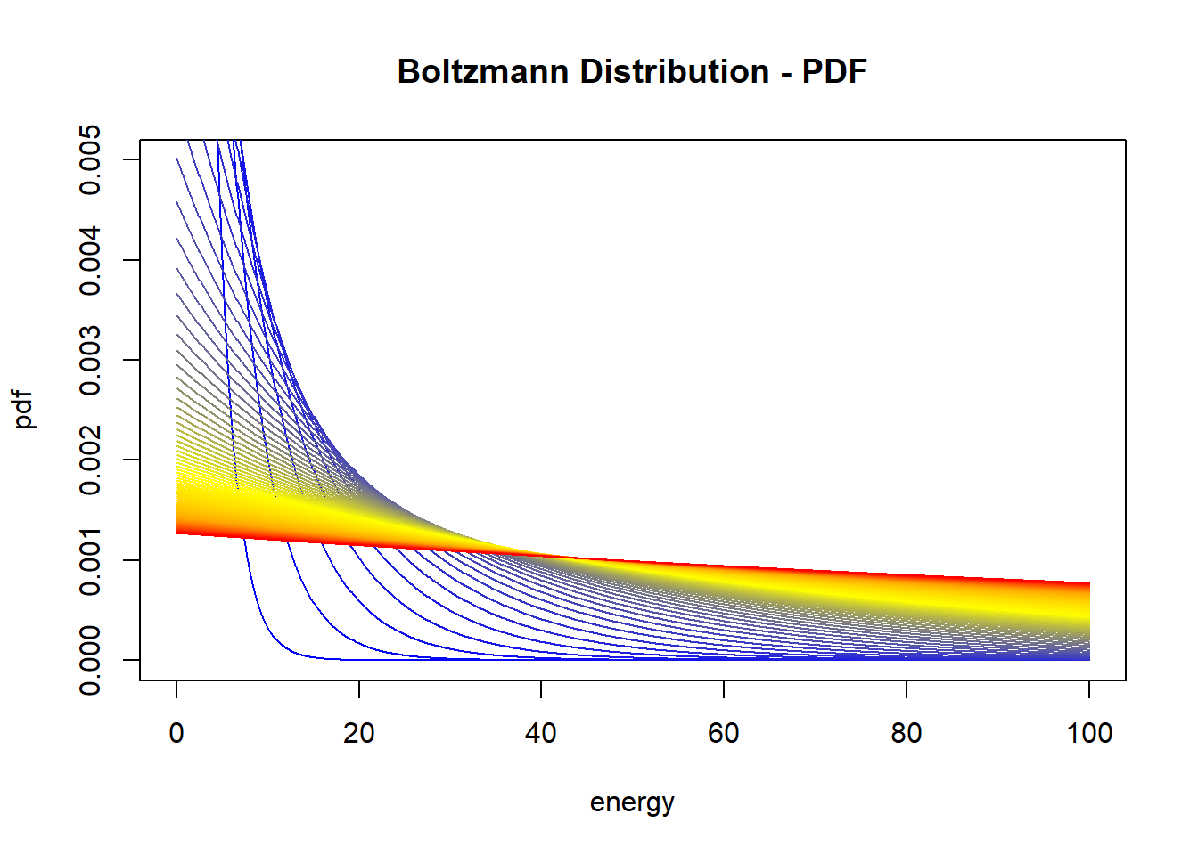 Di seguito la pdf della distribuzione. Colori caldi rappresentano una più alta temperatura.