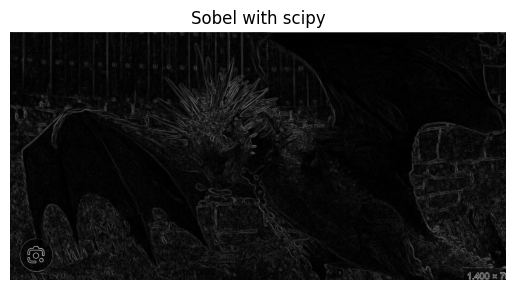 show_img(matrix0, 'Sobel with scipy')Time: 0.1543 seconds